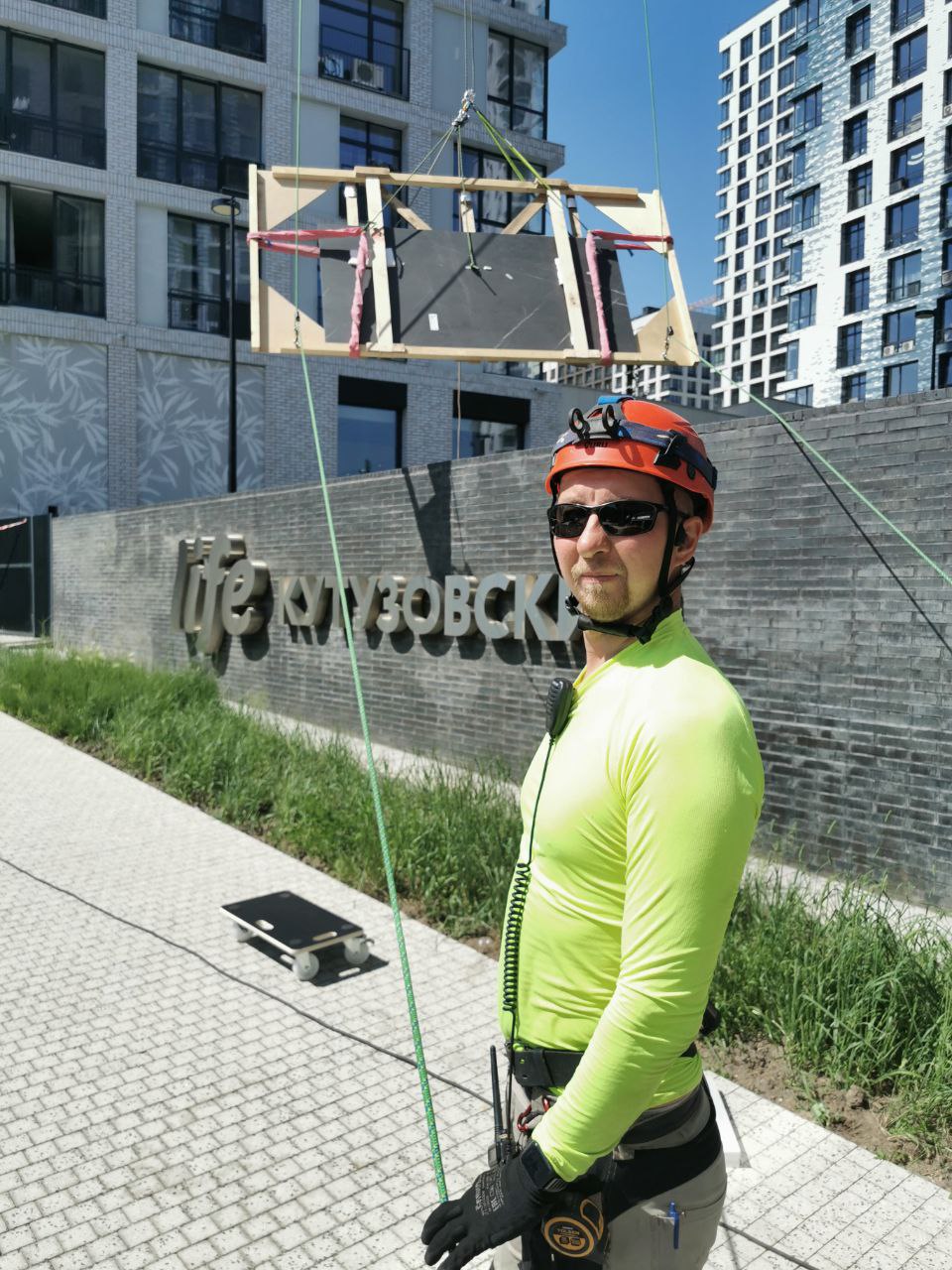 Начиная с 2018 года мы производим монтаж и замену малированных стеклопакетов наЖК “Садовые кварталы” по средствам канатного доступа.